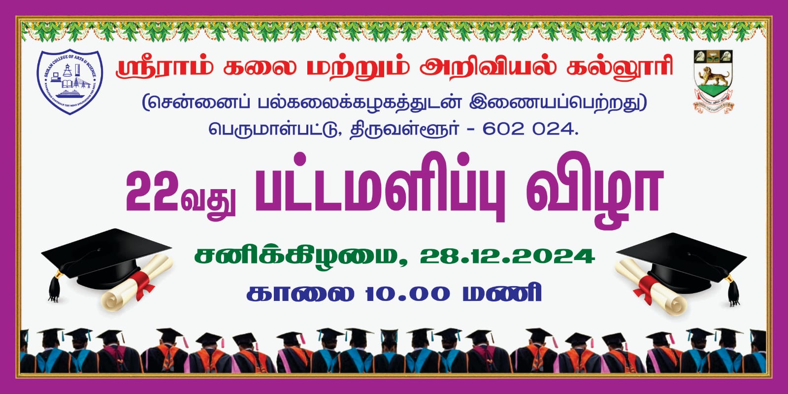 Sriram College of Arts and Science was instituted in the year 1998. It is affiliated to the University of Madras and approved by the AICTE and the Government of Tamilnadu. It is situated at Perumalpattu near Veppampattu Railway Station.